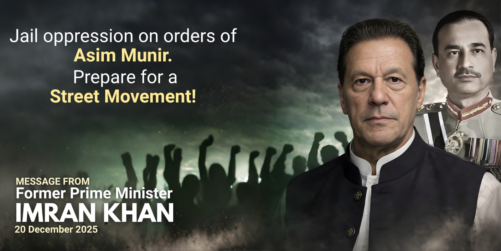 Unjustly imprisoned former Prime Minister of Pakistan, Imran Khan’s Message, after one month of solitary confinement in Adiala Jail - December 2, 2025