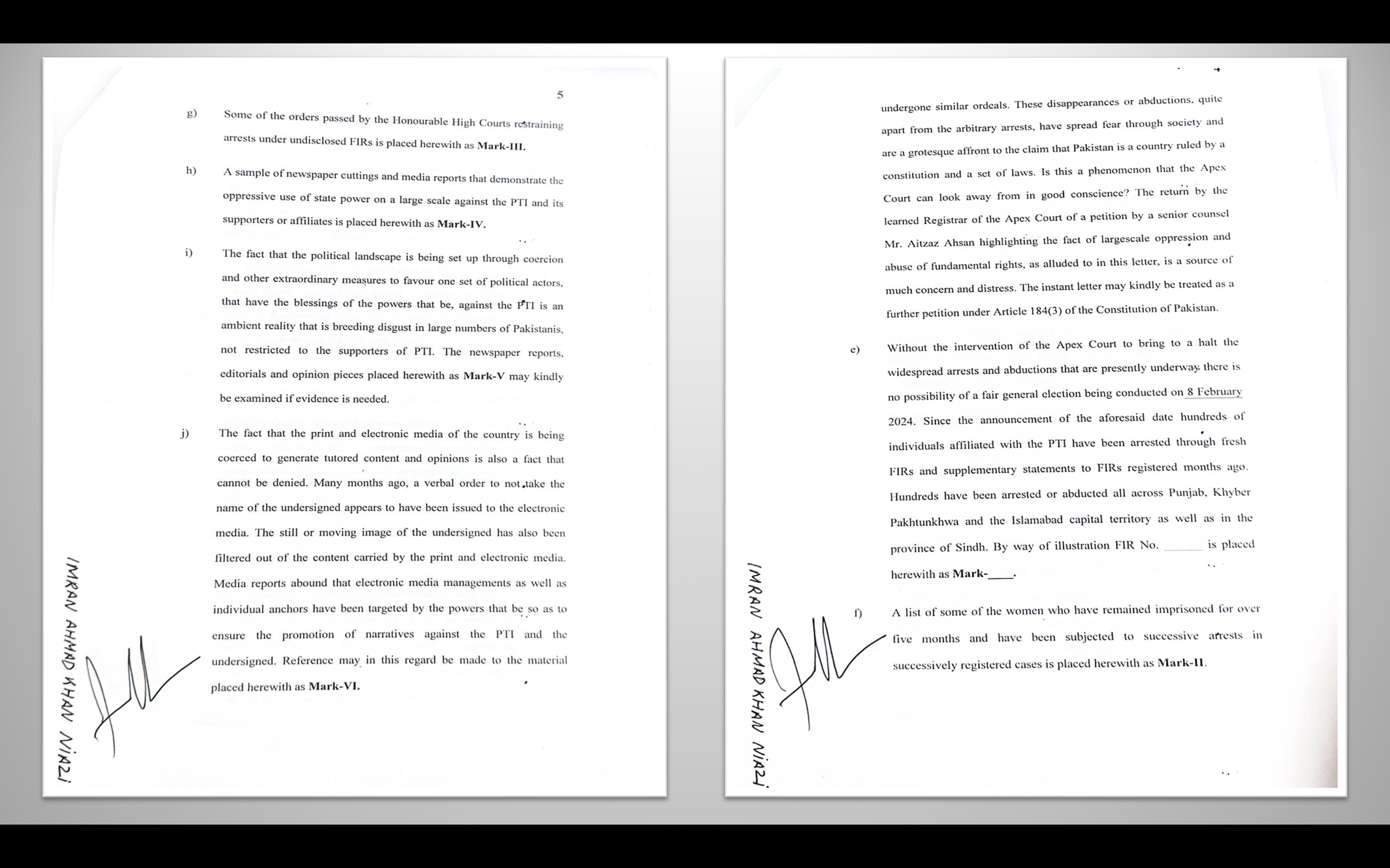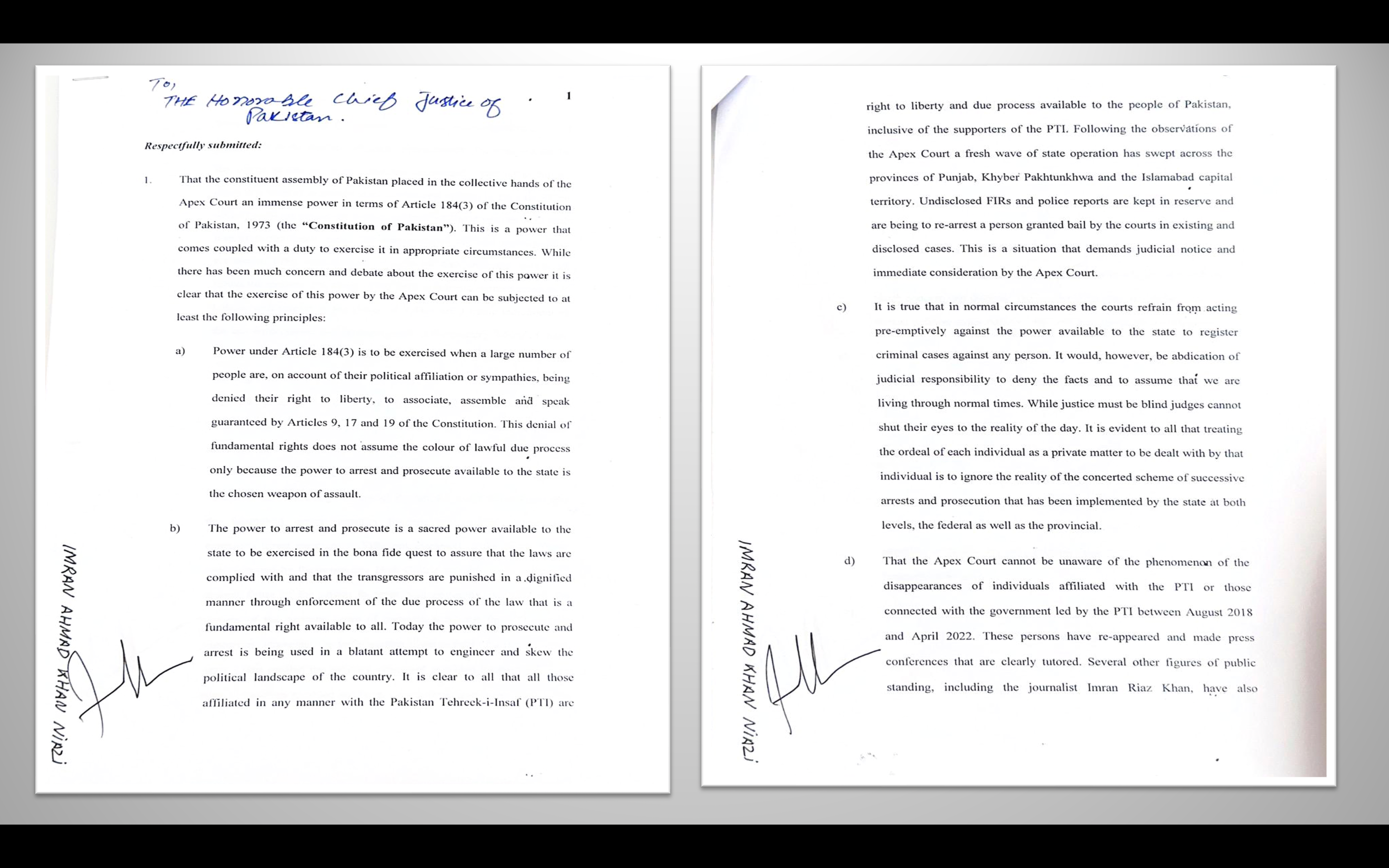 Chairman Pakistan Tehreek-e-Insaf Imran Khan's letter to the Chief Justice of Pakistan