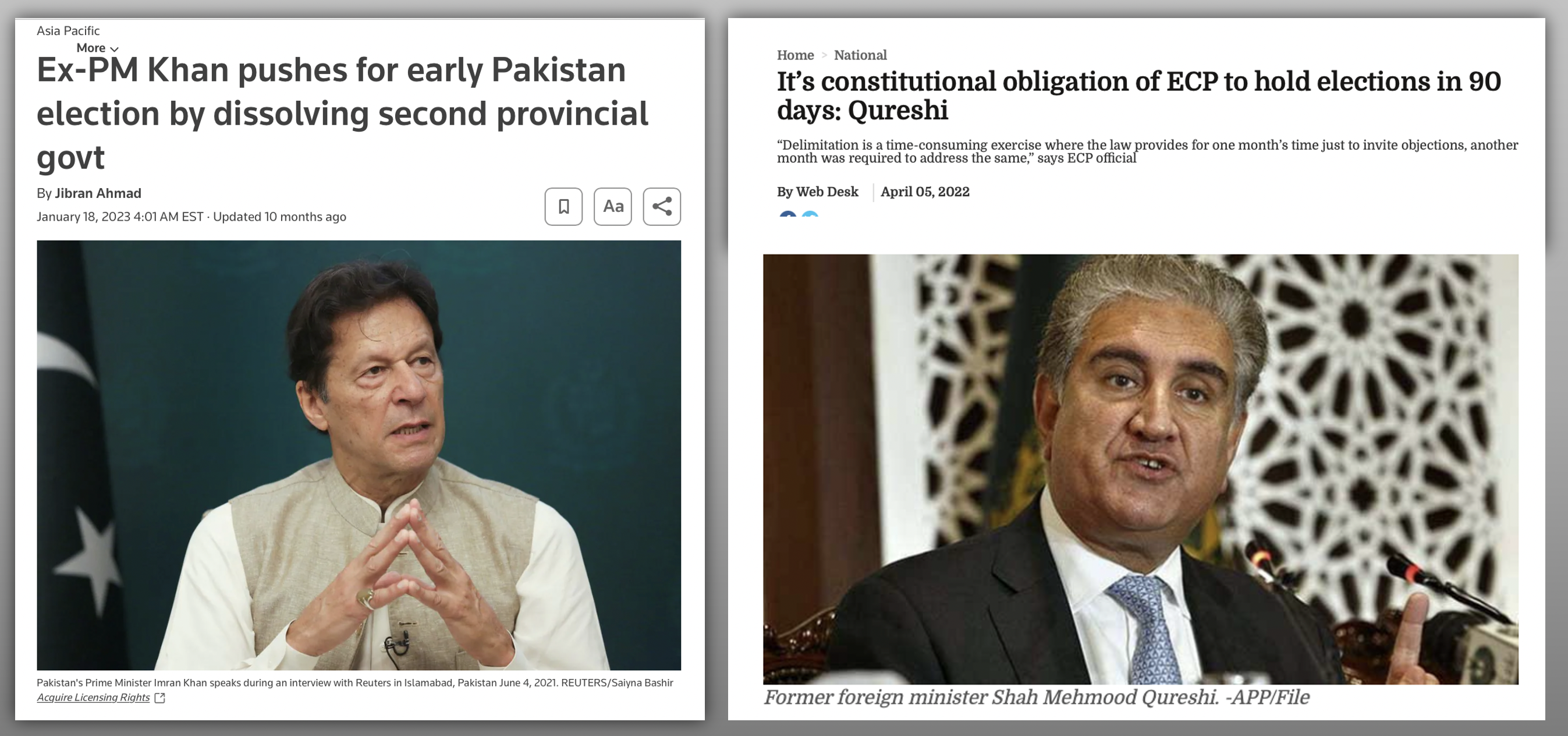 Two major provinces of Pakistan, Punjab and KPK were controlled by former Prime Minister Imran Khan’s Pakistan Tehreek-e-Insaf (PTI) party. In January, Imran Khan dissolved the two assemblies. According to Pakistan’s constitution, elections must have been held within 90 days: