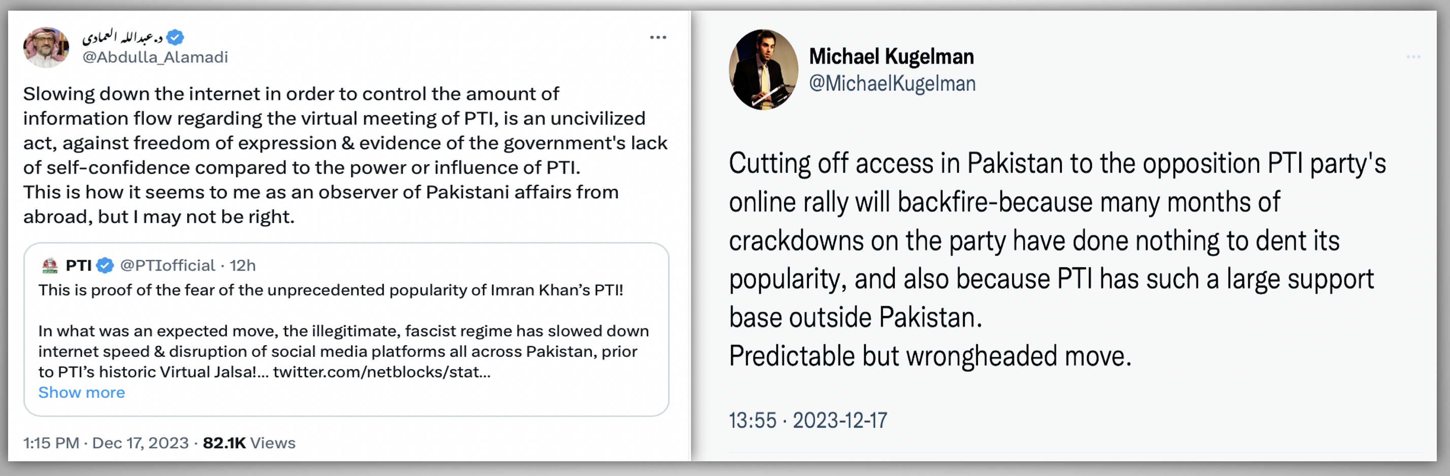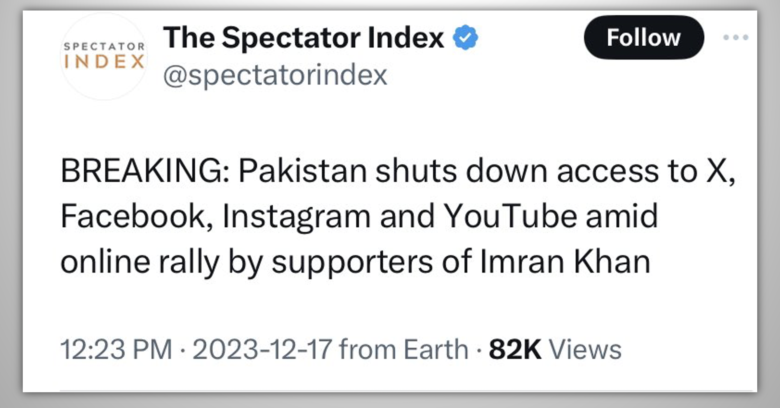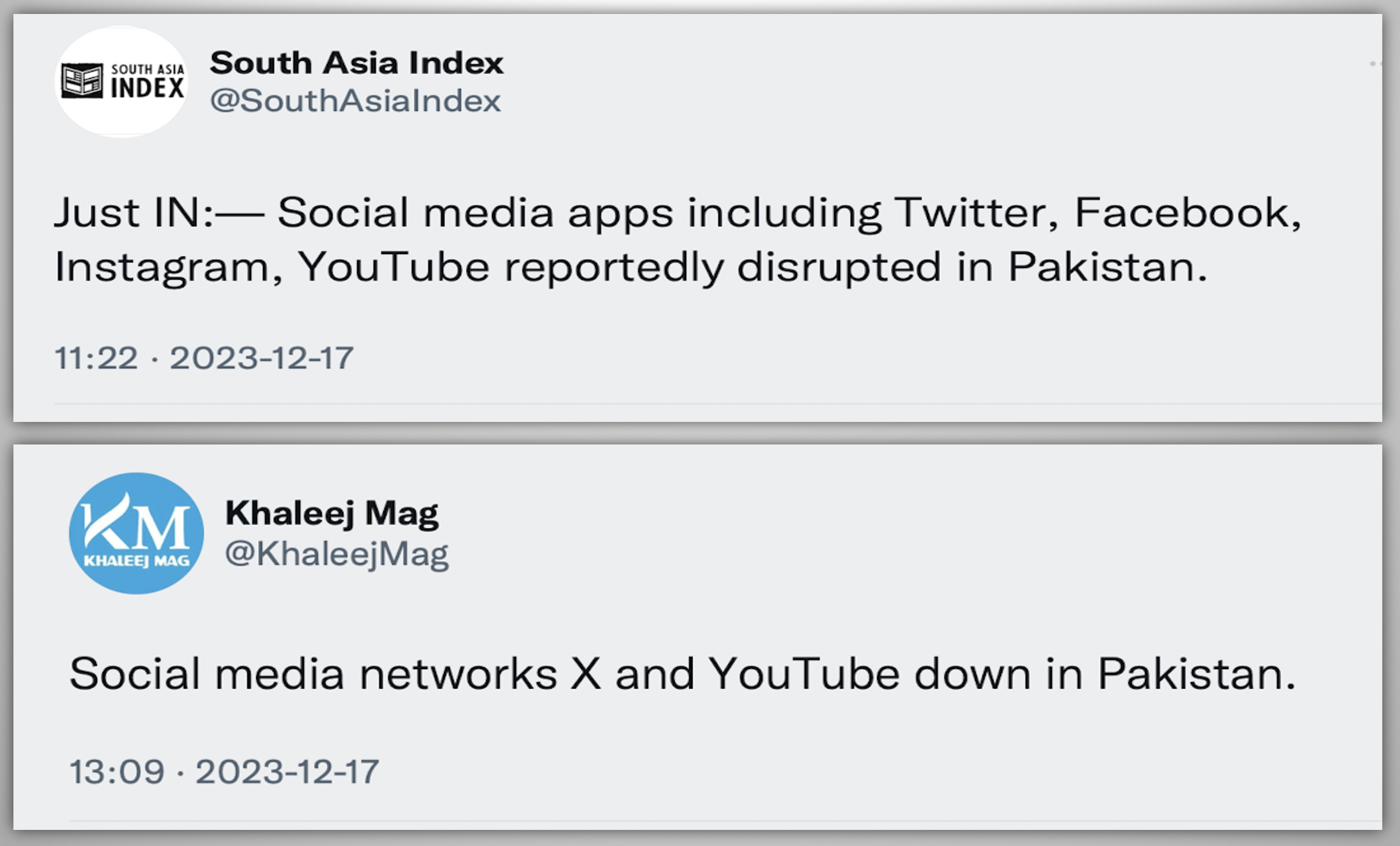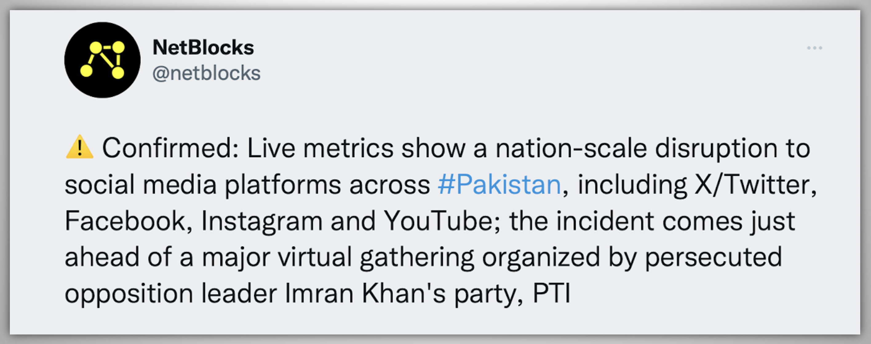 This however, is not a novel occurrence. During live streams of his speeches on YouTube, disruptions to the platform’s services have occurred multiple times. In May 2022, there were instances of internet disruptions throughout Pakistan coinciding with the mass rallies led by the ousted Prime Minister Imran Khan. This tactic has become a recurring strategy, particularly evident in the months leading up to the attempted assassination of the former Prime Minister and even when he was unlawfully arrested in May this year.