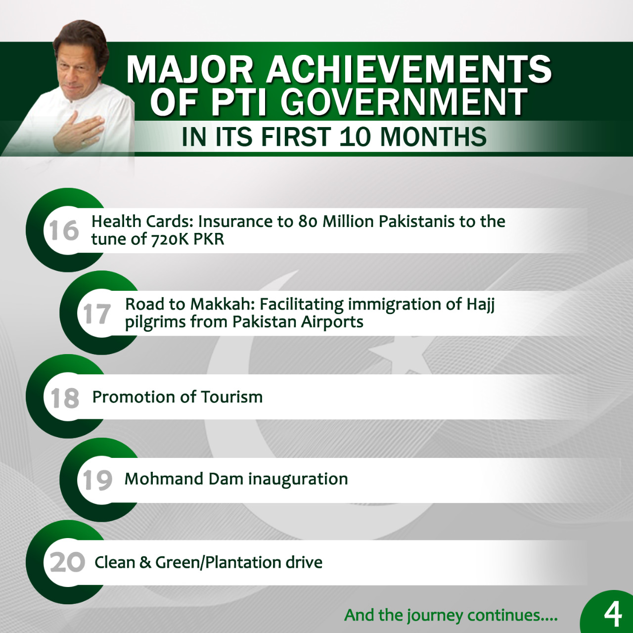 Here is a comprehensive list of achievements in a short span of 10 months. For PTI govt deliverance matters and we are all work and no show off. We promised and we will deliver on all our commitments to our people.