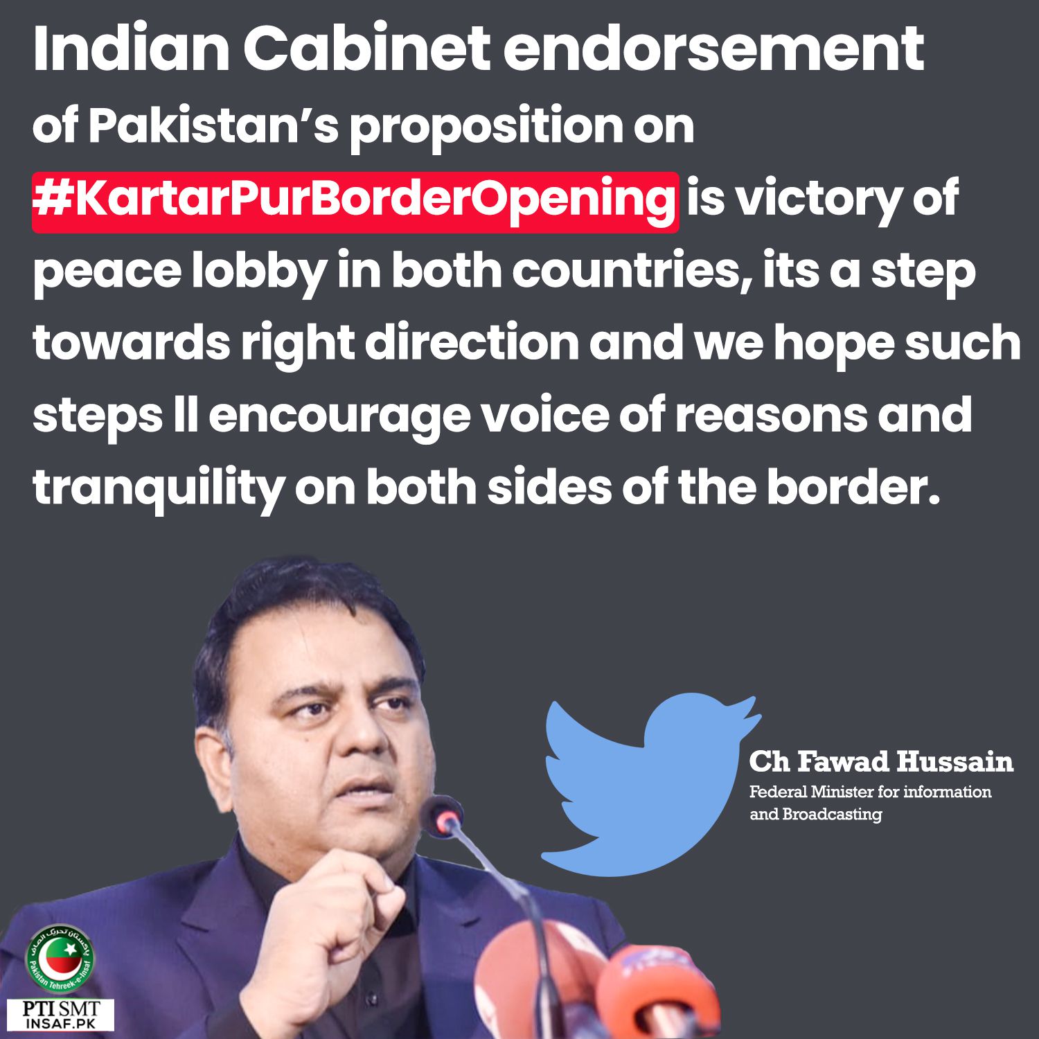 Here is what the Minister of Information Ch Fawad Hussain says On KartasPur Border Opening discussion in Indian Cabinet.