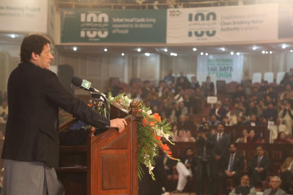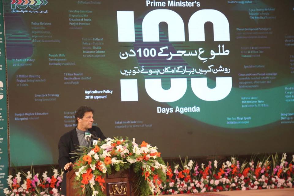 Prime Minister of Pakistan Imran Khan Speech Punjab Government 100 Days Achievement Ceremony Lahore (22.12.18) Prime Minister Imran Khan attended the 100 Days performance ceremony of Punjab Government in Lahore.   “I would like to thank and congratulate Punjab Government for performing the way it did in these 100 days. Quaid-e-Azam emphasized on giving equal rights to minorities. We have to help our minorities and protect them! We have decided to divide budget fairly in Punjab. The gap between the government and the public should be reduced. When the head of the state is corrupt, he destroys the institutions. And when the institutions are destroyed, they are used for personal gains only. When the world sees the leadership of a country is not corrupt, they invest. Investors are coming to invest and our eco situation will get much better” Prime Minister Imran Khan