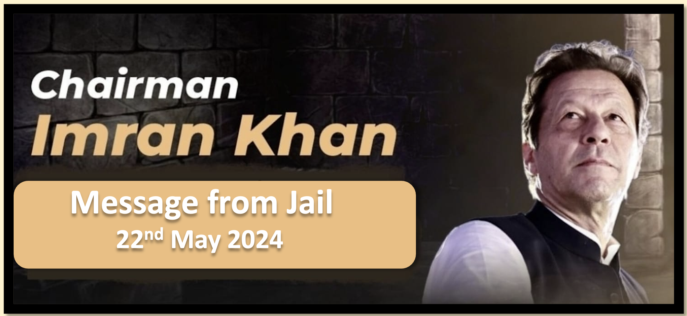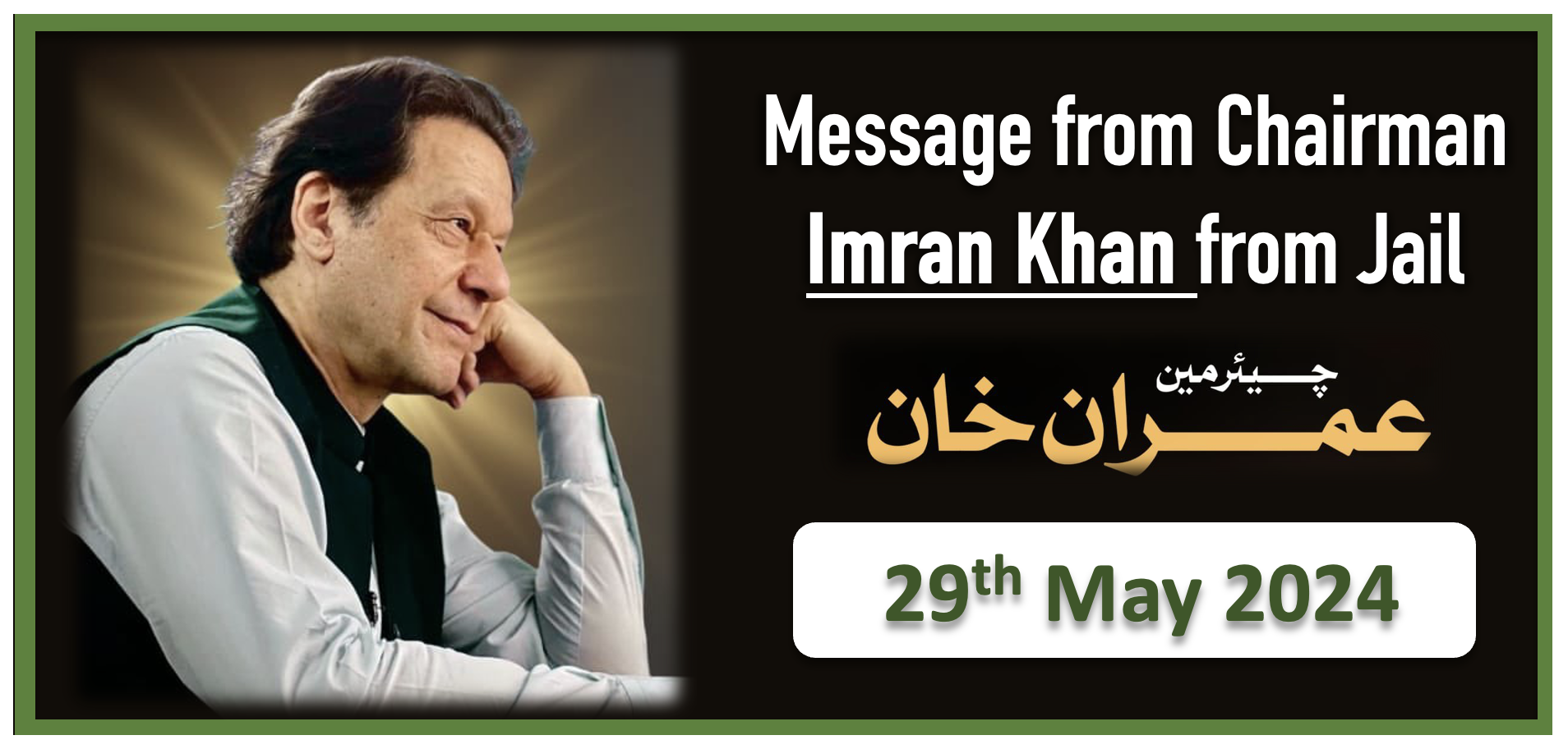 Exclusive message by the unjustly imprisoned founding chairman of Pakistan Tehreek-e-Insaf, Imran Khan, from Adiala Jail