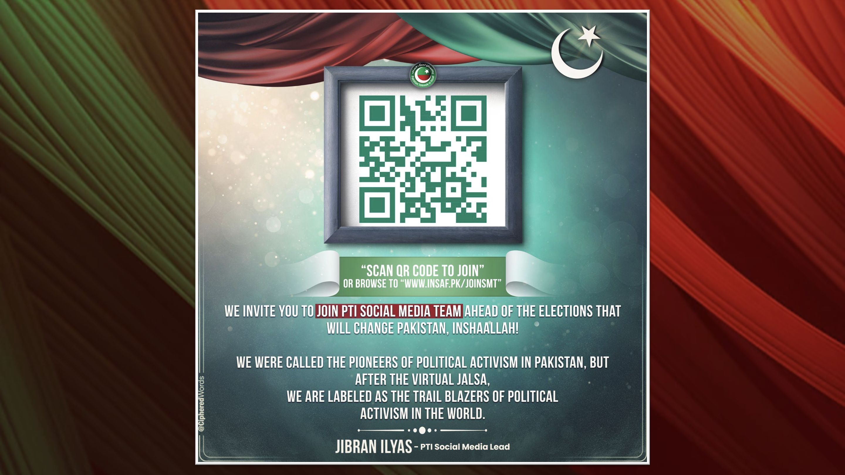 We invite you to join PTI Social Media Team ahead of the historic General Elections on February 8, 2024 and look forward to collaborate with you.