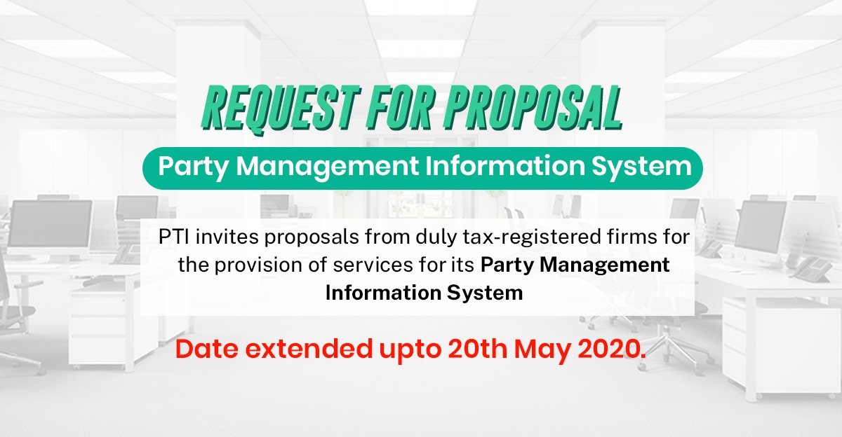 Pakistan Tehreek Insaf (PTI) invites proposals from duly tax-registered firms for the provision of the following services for its Party Management Information System (PMIS) as per terms and condition stipulated in the Request for...
