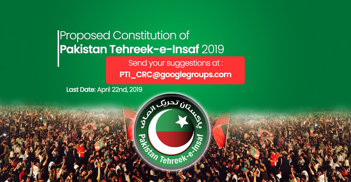 The proposed constitution of Pakistan Tehreek-e-Insaf is here. You can send your suggestions by April 22nd 2019.