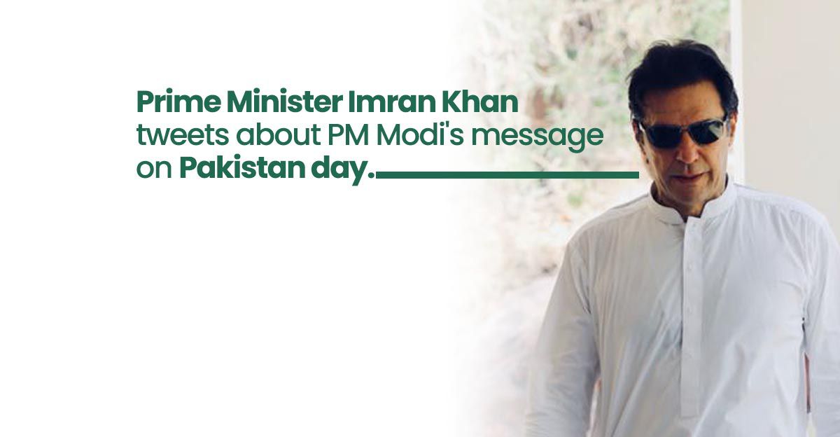 Prime Minister Imran Khan tweets about Indian Prime Minister Narendra Modi's message on Pakistan day.