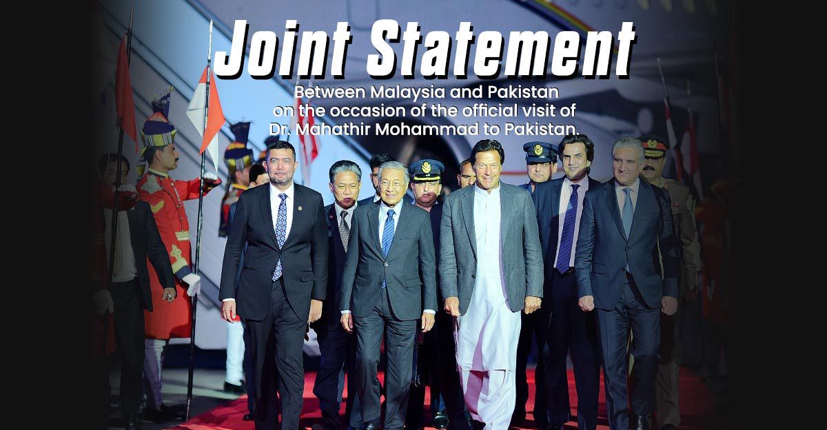 At the invitation of His Excellency Imran Khan, Prime Minister of Islamic Republic Pakistan, the Honourable Tun. Dr. Mahathir Mohamad, Prime Minister of Malaysia undertook an Official Visit to Pakistan from 21-23 March 2019. He is the...