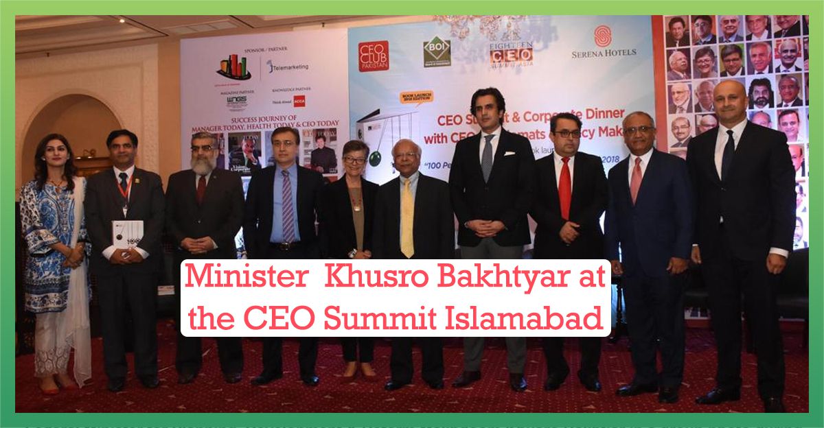 Minister Makhdoom Khusro Bakhtyar addressed the CEO Summit Islamabad’ & book launch of ‘100 performing CEOs and Companies of Pakistan 2018’ organized by CEO Club Pakistan in collaboration with Planning Commission, Board of Investment...