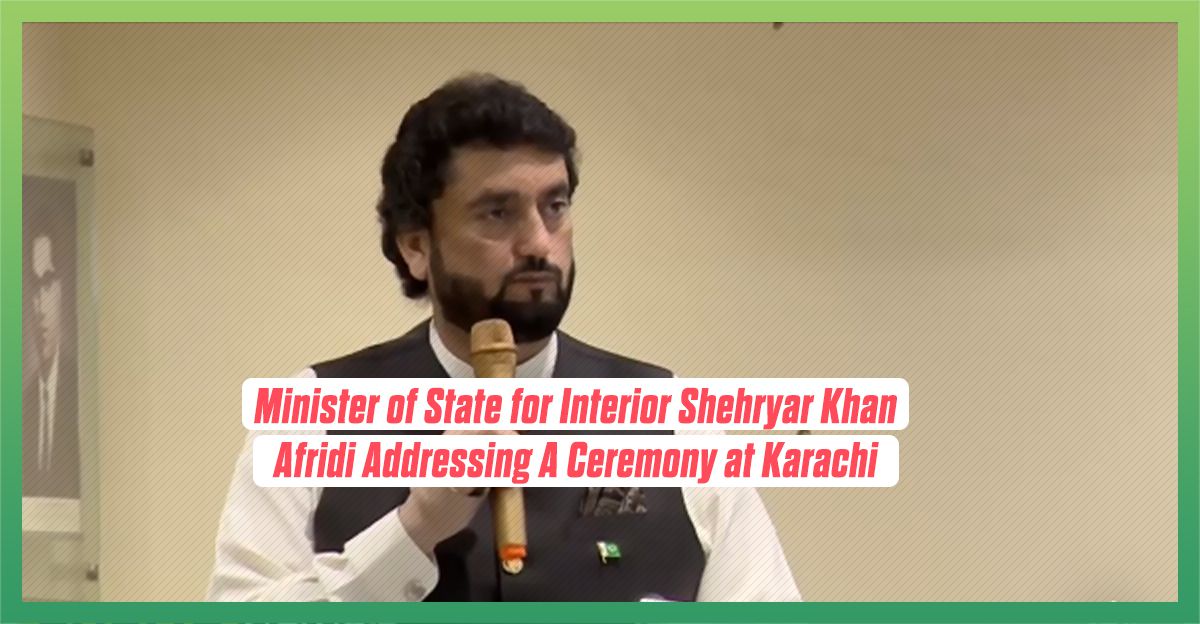 Minister of State for Interior Shehryar Khan Afridi Addressing A Ceremony at Karachi